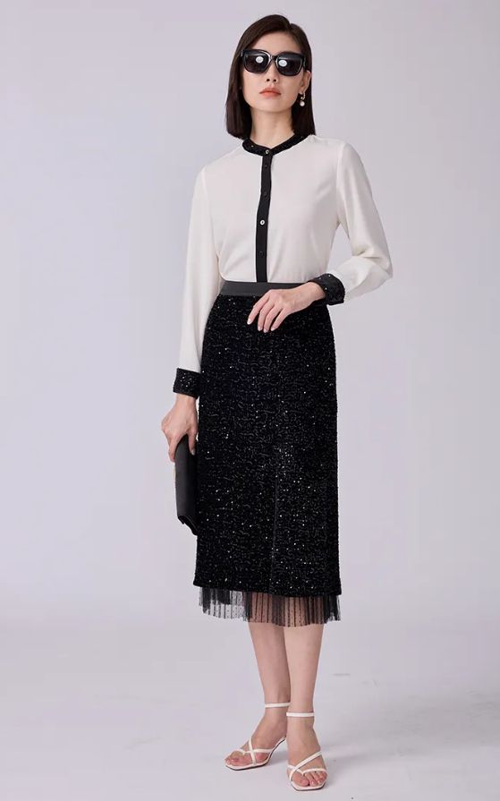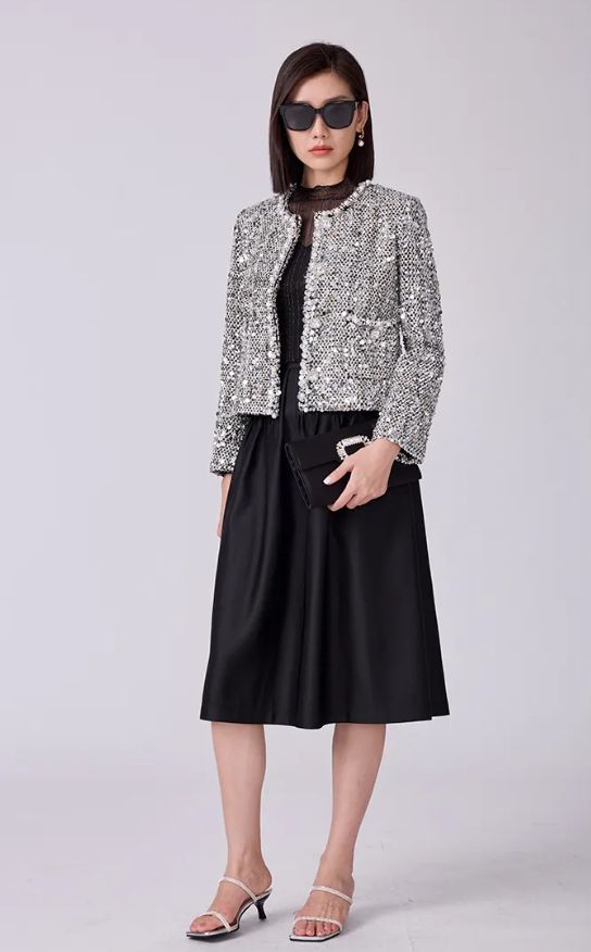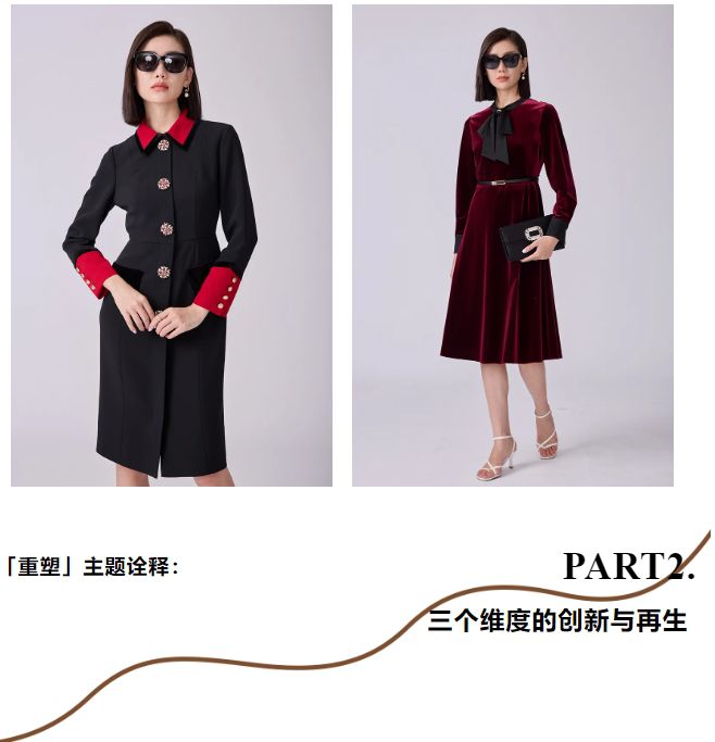 在廓形上以"宽松包容"为基础,打造"不规则层叠廓形"——结构上采用斜向剪裁,下摆模拟冰层开裂的锯齿状;连衣裙则通过抽褶形成类似苔藓丛的立体褶皱,腰间以宽腰带收束,平衡人体曲线。