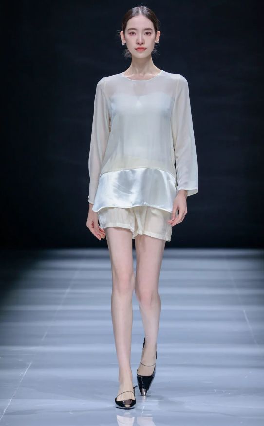 面料是灵感落地的核心媒介。本次走秀服装分为天然面料与欧洲进口定制面料,天然面料如桑蚕丝带来光泽柔滑感,亚麻呈现透气原生态肌理感。