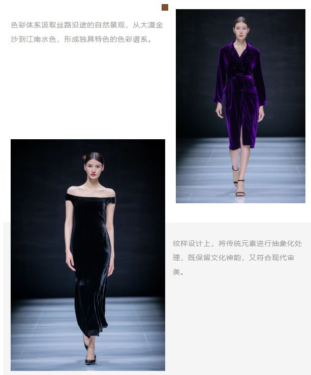 本次发布秀以"流动的文化基因"为核心理念,通过对丝绸之路文化交融的追溯,实现江南传统服饰美学的当代重构。
