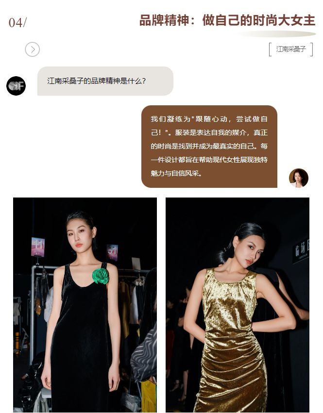 2013年,孙春旭女士创立江南采桑子品牌,最终在深圳南山区南油市场设立总部,如今已成为中国风丝绒类精品女装的领军品牌。