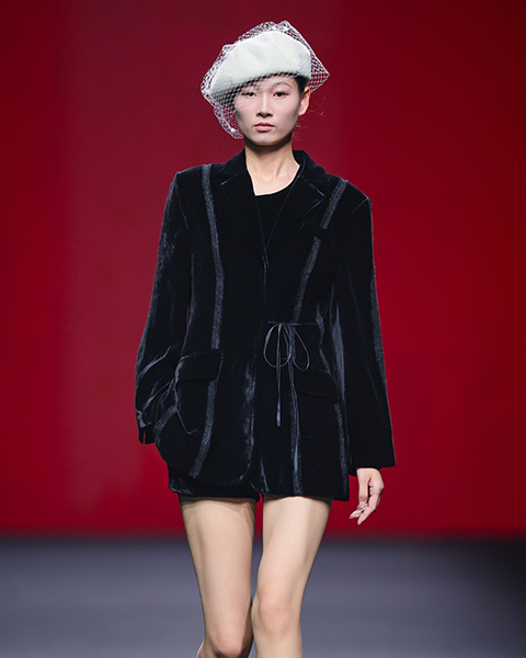 在面料运用上,我们突破传统丝绒的厚重感,改良了织造工艺与后处理技术,设计方面,以立体剪裁重构传统袍服的平面结构,赋予服装“一衣多穿”的适应性,呼应现代都市生活的多元场景需求。工艺亮点在于非遗技艺的现代化转译,在丝绒表面形成虚实相生的纹理;通过这场走秀,我们希望向消费者传达:真正的文化传承不是对过去的复制,而是让传统在当代生活中获得新生。每一件服装都是文化基因与时代精神的共生体——当穿着江南采桑子服装时,不仅是穿着时尚的服装形态,更是在参与一场关于传统与现代、个体与文化的对话。我们期待消费者能感受到,服装不仅是身体的包裹,更是承载文化记忆与情感共鸣的媒介。