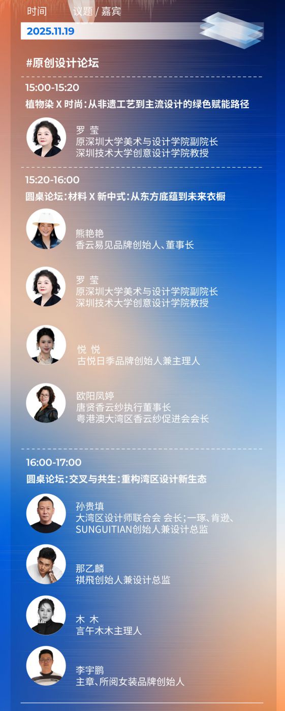 11月19日-21日,SS26深圳原创时装周——原创设计论坛将以 「回声宇宙 Echoverse」 为题,汇聚行业先行者、品牌创建者与一线实践者,共同探索AI时代的创作变革、可持续设计落地、文化表达与商业价值的平衡之道。这不仅是一场思想交锋,更是一次产业能量的共振现场。让我们共同走进“回声宇宙”,在共振中发现新的秩序,在回响中塑造未来的声音。