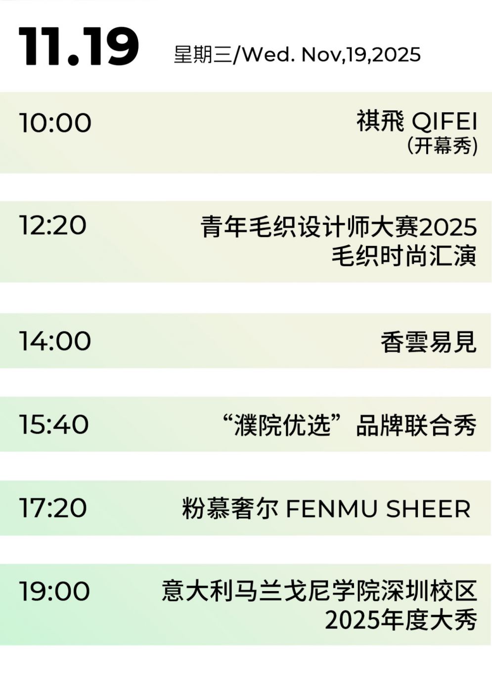 2025年11月19-21日,深圳时装周官方日程-SS26深圳原创时装周将以「溯原新声」为主题,在深圳会展中心(福田)盛大启幕。本届时装周以30+场先锋大秀、80+设计师品牌、60000㎡空间规模,携手第31届Fashion Source时尚之源深圳展,打造“1展+1周”全产业链赋能平台,以设计回望文化根脉,以科技激活未来宣言,为中国原创时尚构建从趋势洞察到商业转化的完整生态。
