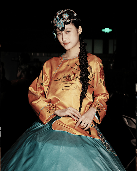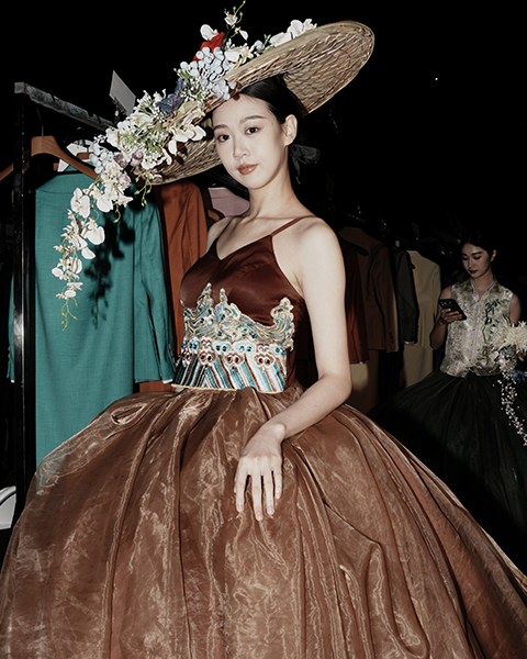 运用传统绞织工艺,分别为,非遗云锦,非遗苏绣,非遗苗绣,以及非遣点翠等传统技艺进行创作,用后现代的表现手法去诠释过去与未来的美好生活,衍生新中式文化,再次重生。 当今社会与过去有所不同的是,古人的穿搭具有独特的艺术性,和戏剧性。而如今的现代人更倾向于简约时尚,缺乏内核的力量,精神文明缺失,审美缺失。而达官贵人。更讲工艺更加共情,我把人生的美好与希望分享给这次时装周,2组用不同的时期整体设计,去演变历史的变化。灵感来源于当下的人文精神归位。