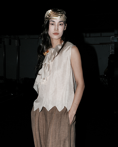 这次走秀我们选用香云纱、真丝等天然面料,在色彩搭配上追求和谐统一。想要传递的是一种松弛的人生态度,因此整个系列的剪裁都保持着舒适的松弛感。灵感来源于那些常常被忽视的生活细节,我们希望将这些细微之美的瞬间永恒定格。